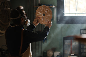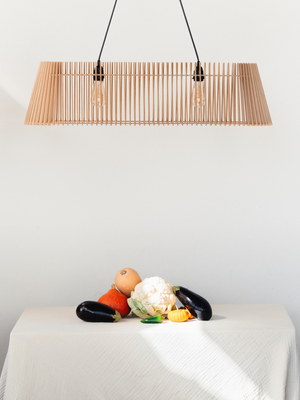 Chaque pièce raconte l'histoire d'un arbre qui a grandi lentement, façonné par les saisons, avant de renaître sous forme de lumière.