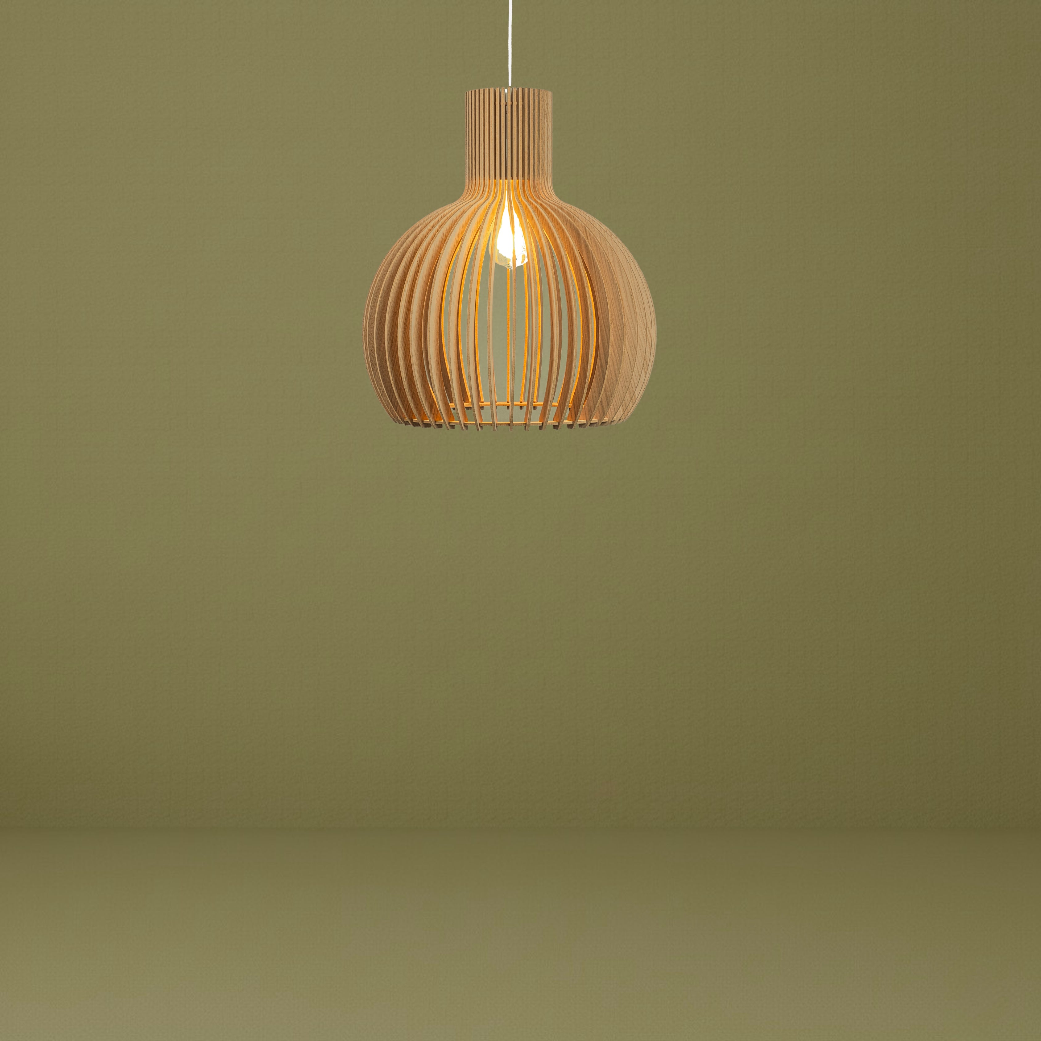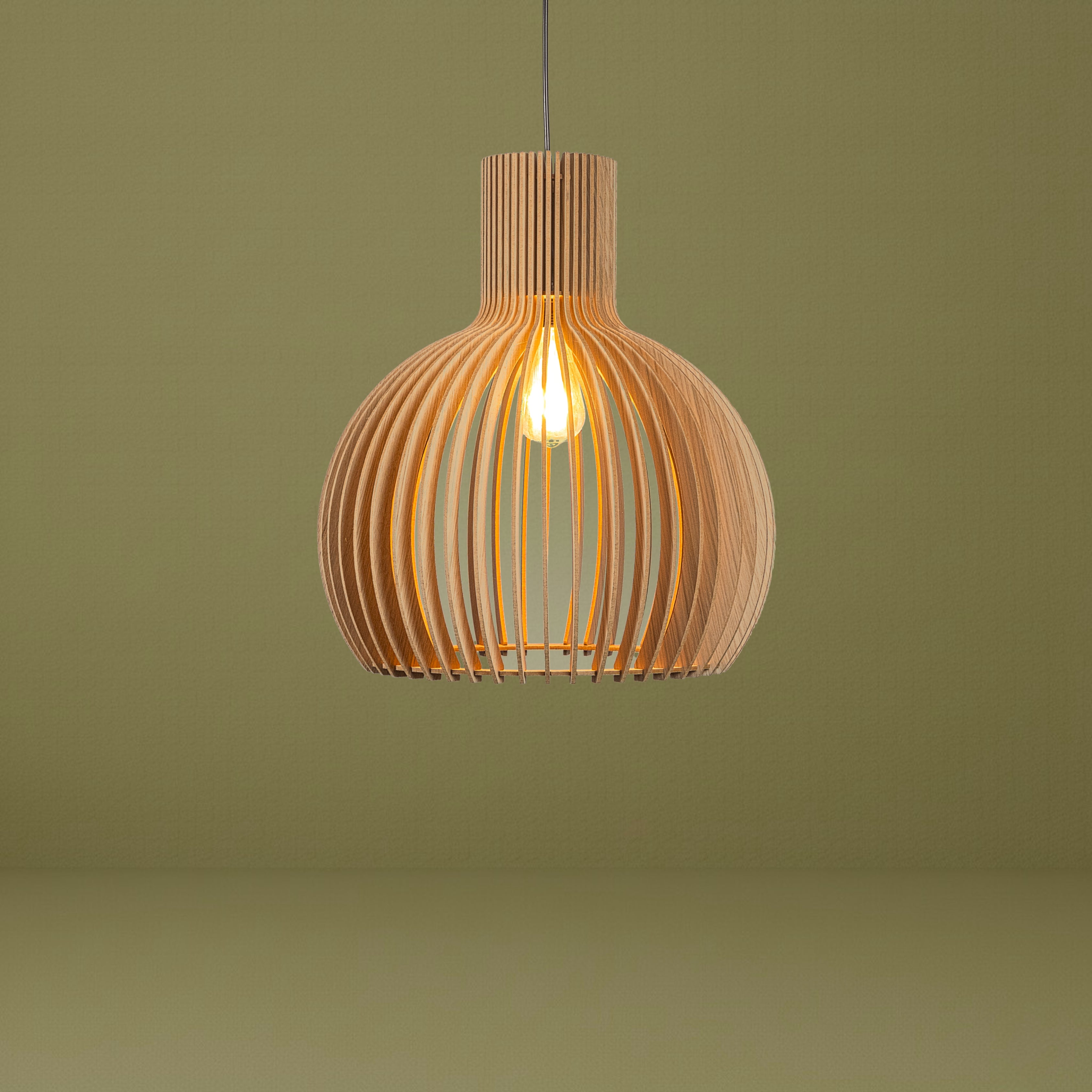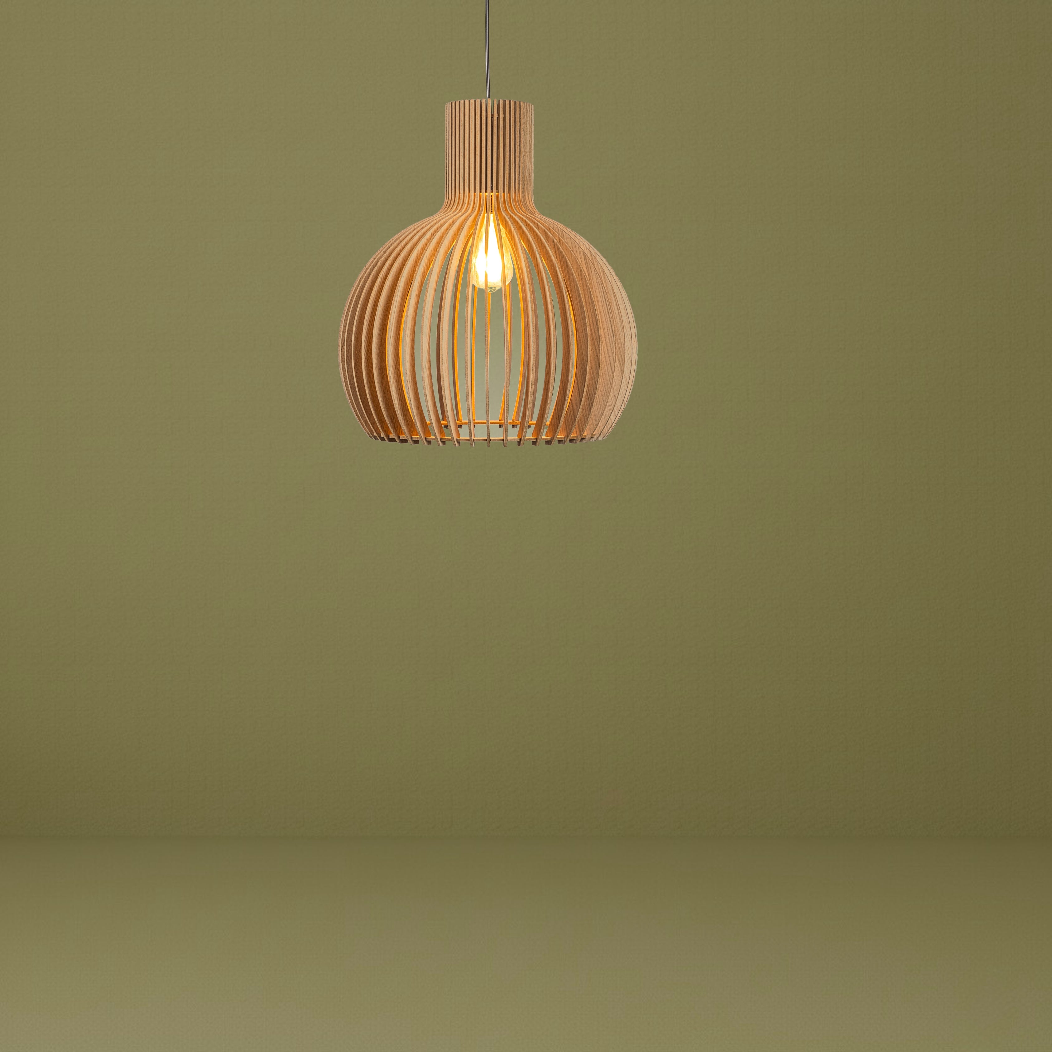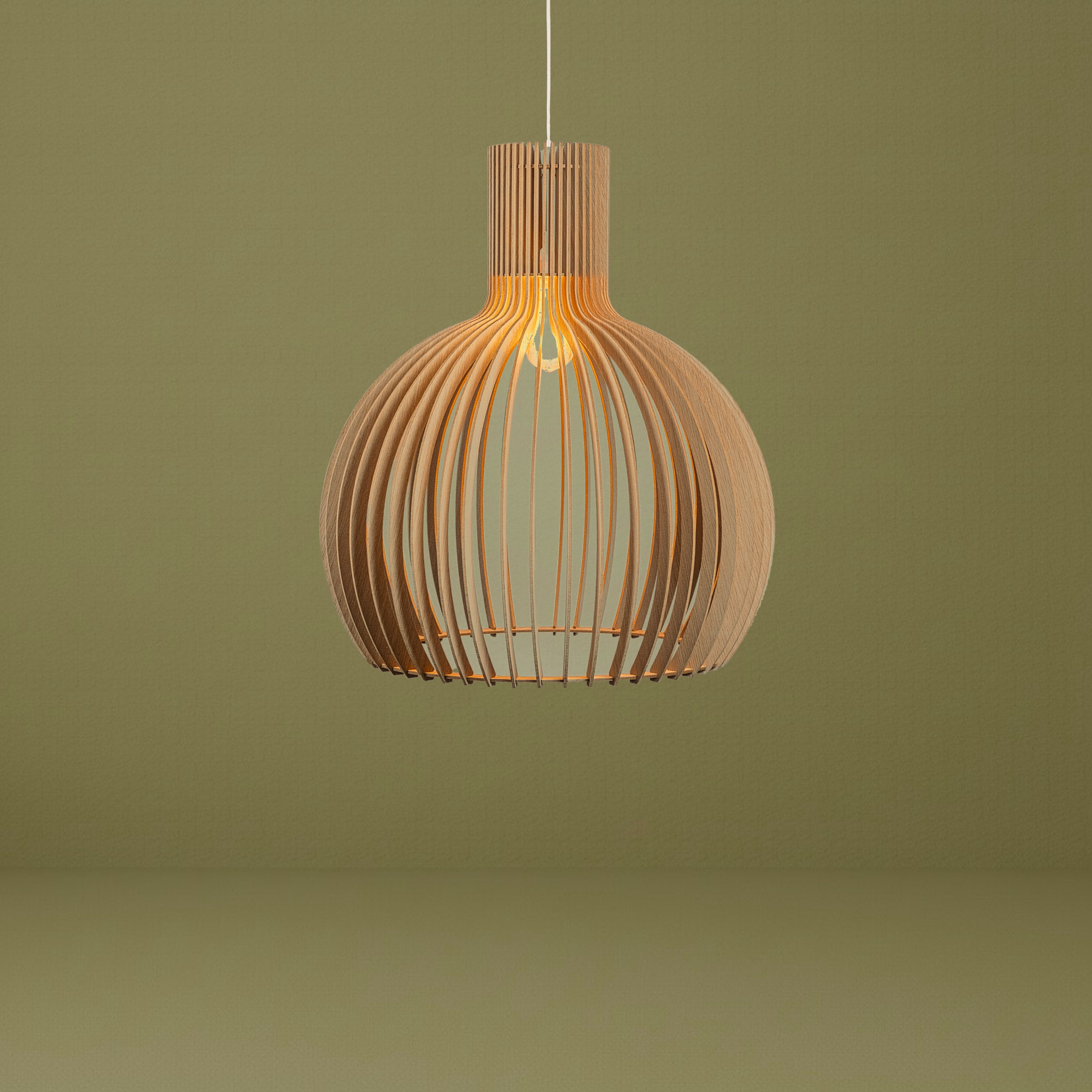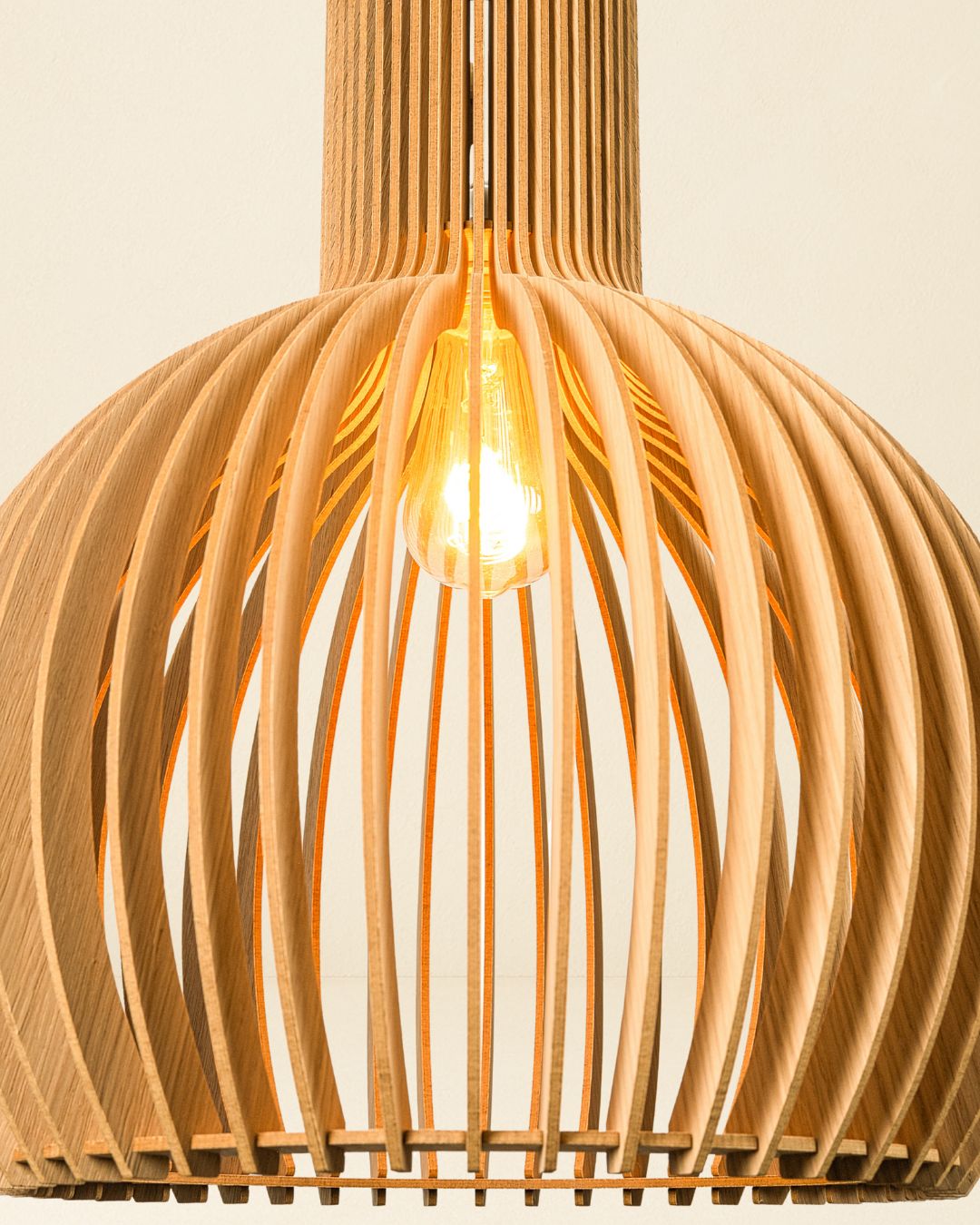 Nous utilisons un plaquage de chêne véritable certifié PEFC, garantissant une gestion durable et responsable des forêts. Ce matériau offre un veinage naturel, une grande stabilité et une structure légère et durable pour chacun de nos luminaires.
