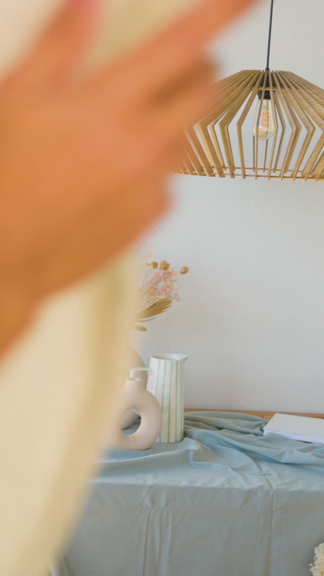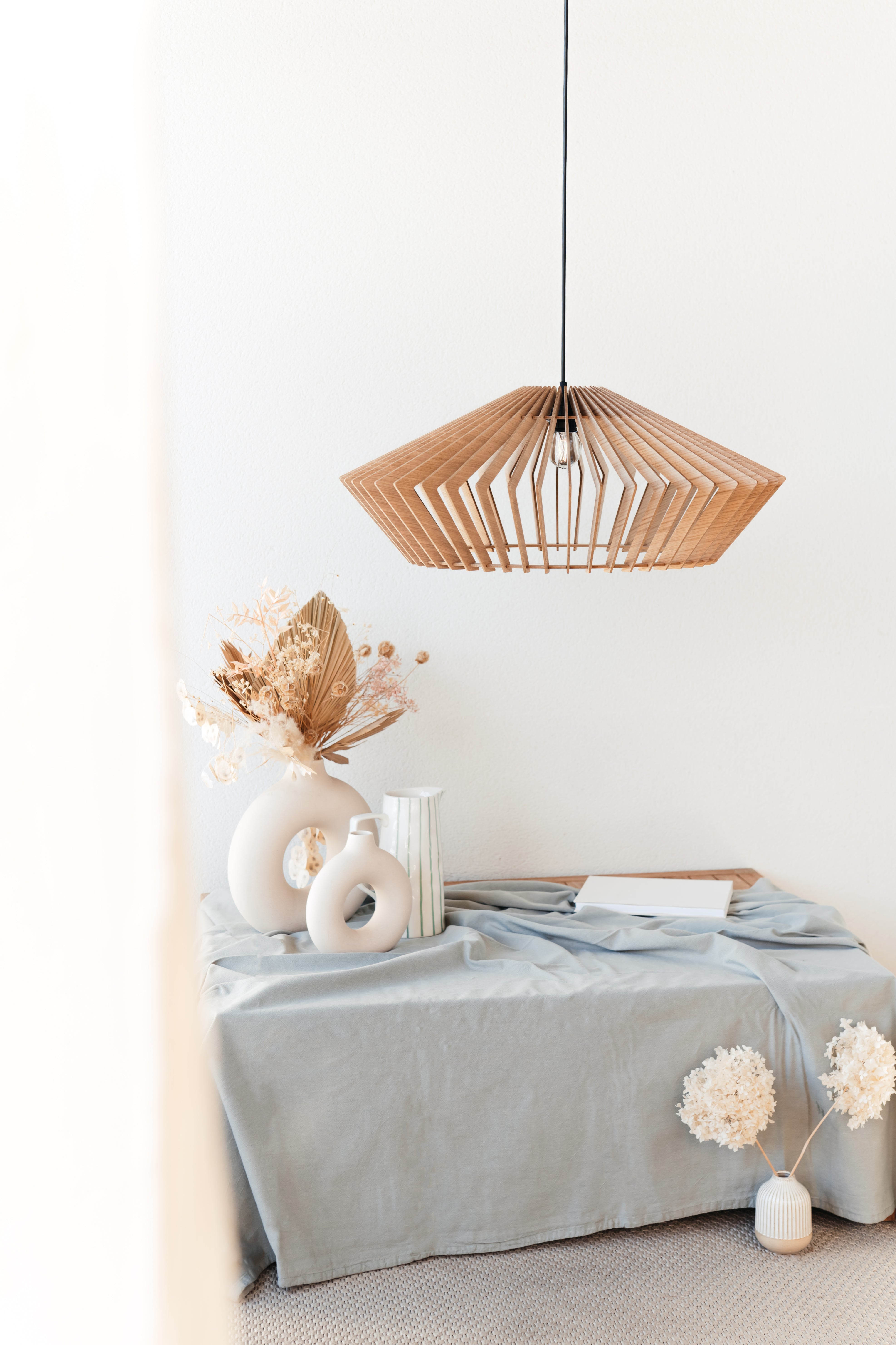 Chaque lame capte la lumière, la filtre, la rend douce et vivante. Une pièce solaire, qui réchauffe sans éblouir.